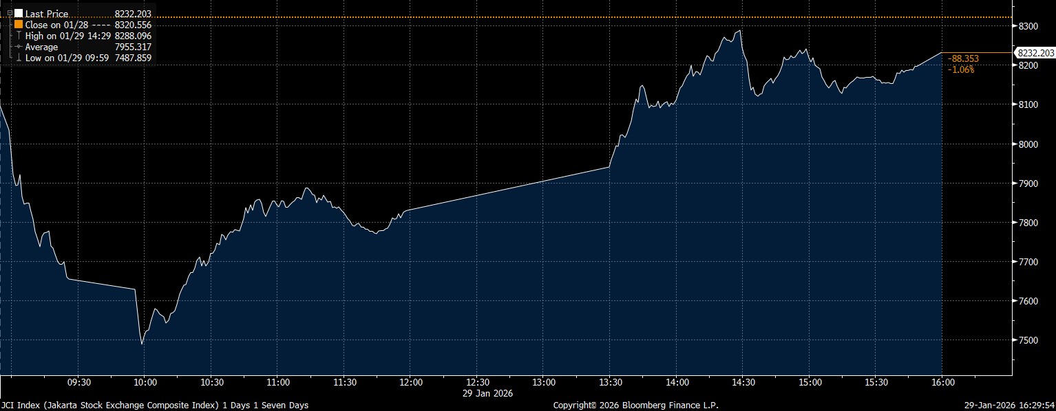 Jakarta, Kabarins.com – Bursa saham Indonesia baru saja melewati salah satu hari paling mencekam dalam sejarahnya pada Kamis, 29 Januari 2026. Pelaku pasar dipaksa menaiki rollercoaster emosi yang ekstrem ketika Indeks Harga Saham Gabungan (IHSG) sempat terjun bebas hingga menyentuh level 7.481,98. Penurunan yang mencapai 10 persen pada sesi perdagangan pertama tersebut bahkan memicu mekanisme trading halt—penghentian perdagangan sementara—selama 30 menit untuk mendinginkan kepanikan pasar. Namun, di ujung hari, indeks berhasil melakukan manuver pemulihan yang dramatis meski tetap harus ditutup di zona merah.