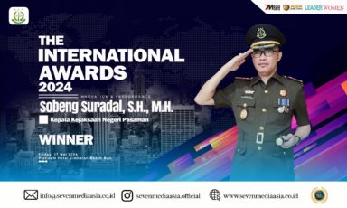 Penghargaan ini diberikan oleh management Seven Media Asia selaku penyelenggara “THE INTERNATIONAL AWARDS 2024”. Prestasi ini menjadi semakin istimewa karena merupakan penghargaan ketiga yang diterima oleh Sobeng Suradal, S.H., M.H., dari Seven Media Asia.