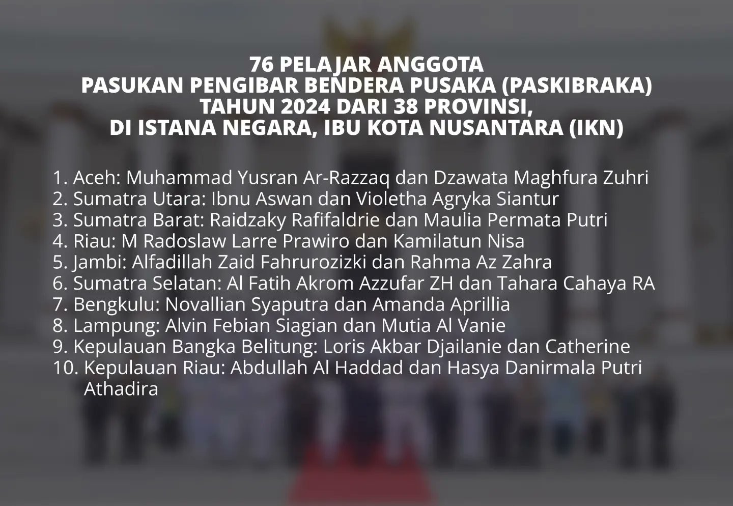 Mereka akan bertugas pada peringatan HUT ke-79 Republik Indonesia yang akan dilaksanakan pada 17 Agustus 2024 di Istana Negara, Ibu Kota Nusantara, Kalimantan Timur.