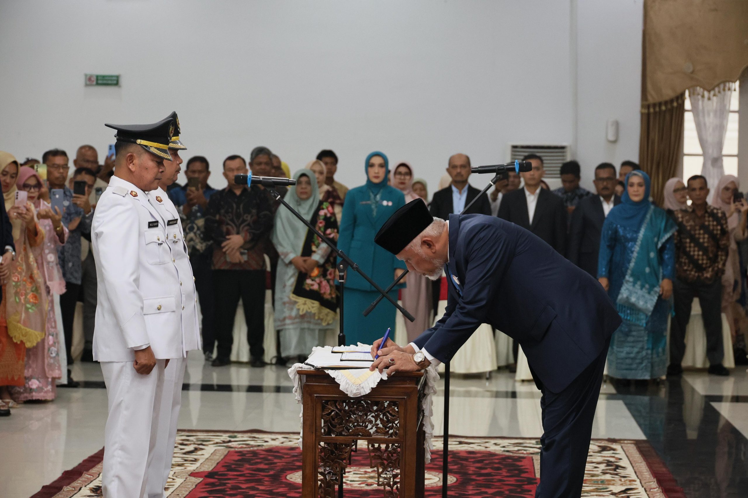 Padang, kabarins.com — Gubernur Sumatera Barat (Sumbar), Mahyeldi Ansharullah resmi melantik Welly Suhery dan Parulian sebagai Bupati dan Wakil Bupati Pasaman periode 2025-2030 di Auditorium Gubernuran, Jumat (30/5/2025).