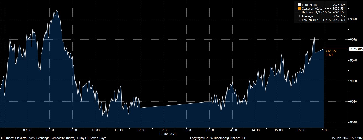Jakarta, Kabarins.com – Lantai bursa saham Indonesia kembali mencatatkan sejarah emas pada perdagangan Kamis, 15 Januari 2026. Indeks Harga Saham Gabungan (IHSG) seolah memiliki imunitas terhadap sentimen negatif global maupun pelemahan mata uang domestik, dengan berhasil menutup hari di level tertinggi sepanjang masa atau All Time High (ATH) pada posisi 9.075,4. Penguatan sebesar 0,47 persen ini menegaskan dominasi kaum bullish yang bahkan sempat membawa indeks menyentuh level psikologis intraday di 9.100,82.