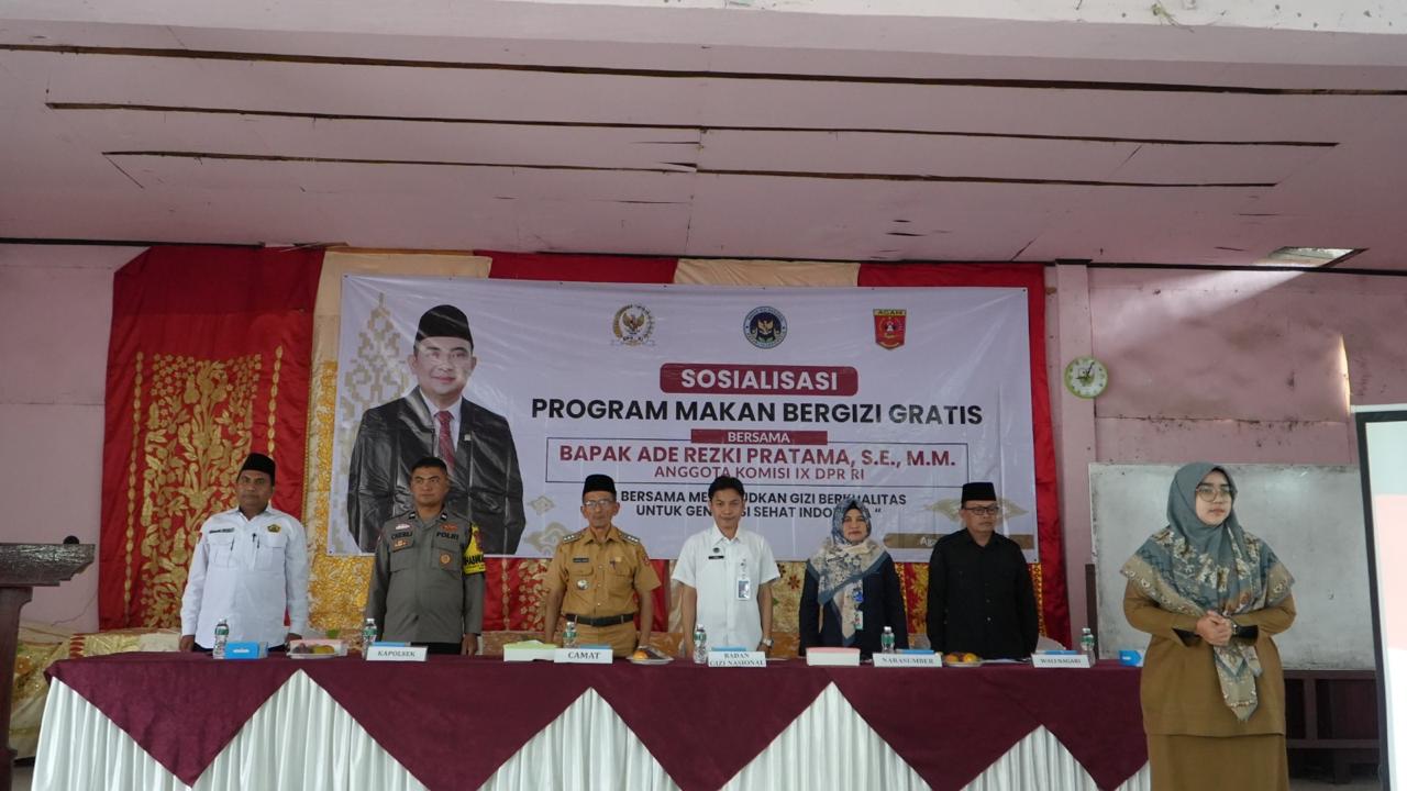 Acara sosialisasi program MBG dihadiri oleh Anggota Komisi IX DPR RI Ade Rezki Pratama, PLT. Kepala Balai Besar POM Hilda Murni, Tenaga Ahli Promosi dan Edukasi Gizi Adib Al-Fikry serta tokoh masyarakt setempat.