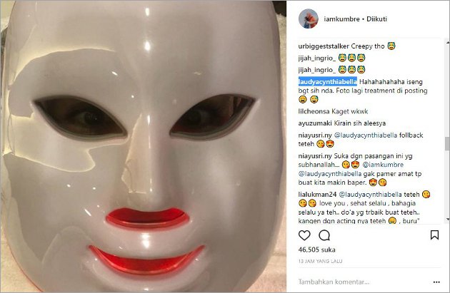 “@laudyacynthiabella tandanya kangen teh, cepet balik ya kasihan tuch si abang jdi kesepian kalo g ada istri disampingya,” komentar pemilik akun @kurm***99. “Mungkin nitizen menduga didalam topeng itu abang,ternyata itu @laudyacynthiabella pake LED MASK…” tambah akun @ardiria****n88.