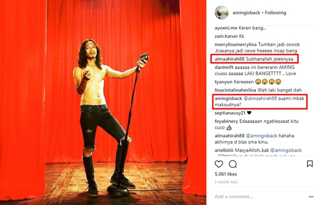 Salah satunya adalah pemilik akun @xxxaahirxxxx yang mencibir Aming jelek dalam foto tersebut. “Subhanallah jeleknyaa,” tulis akun @xxxaahirxxxx tersebut. Aming pun tak tinggal diam melihat komentar miring dari salah satu netizen itu.