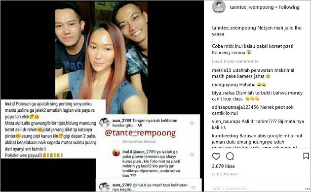 Netizen dengan akun  @aurxxx78x menuliskan komentar miring soal tangan Inul yang terlihat kendor dalam salah satu unggahannya. “Tangannya kok kelihatan kendor gitu… Mf,” tulis akun tersebut langsung ditanggapi oleh Inul.