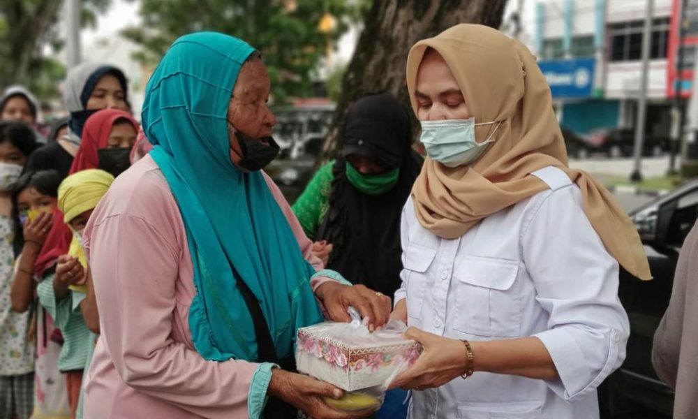 Kabarins.com,Padang–Pengurus DPD Perempuan Indonesia Raya (PIRA) Sumbar menggelar bakti sosial pembagian ratusan nasi kotak dan takjil di Kota Padang, Kamis (6/5) sore. Sejumlah titik didatangi tim yang dipimpin Ketua Harian PIRA Sumbar Elly Trhisyanti dan Sekretaris Nurhaida ini.