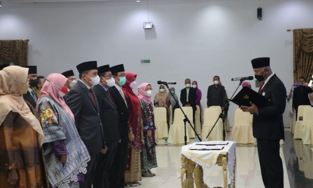 Kabarins.com, Padang- Gubernur Sumatera Barat (Sumbar) Mahyeldi Ansharullah melantik dan mengambil sumpah 16 orang pejabat pimpinan tinggi pratama di lingkungan Pemerintah Provinsi Sumbar, di Auditorium Gubernuran, Senin (3/1/2022).