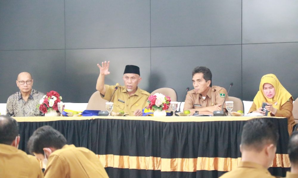 Demikian diungkapkan Gubernur Mahyeldi saat memimpin rapat koordinasi yang dihadiri oleh Bupati dan Walikota serta Kepala OPD se kabupaten dan kota, di Auditorium Gubernuran, Senin (5/23/2022). Turut hadir juga dalam rapat tersebut, konsultan dari PT. Sobo Rejo, PT. Geosinindo, dan PT. Geoteknika Adhiyasa.