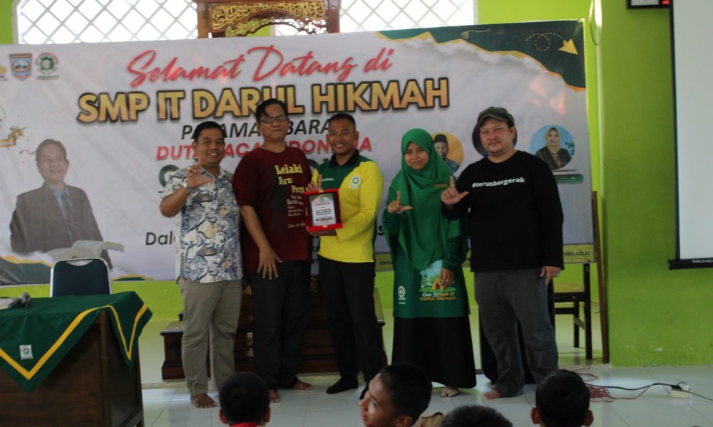Kabarins.com, Pasbar–Duta Baca Indonesia, Gol A Gong didampingi Kepala Dinas Kearsipan dan Perpustakaan Pasaman Barat, Bapak Muharram bersama Ketua Forum Literasi Pasaman Barat Denni Meilizon melakukan kegiatan safari literasi ke SMP IT Darul Hikmah Pasaman Barat, Sabtu (25/3/2023) Sore.