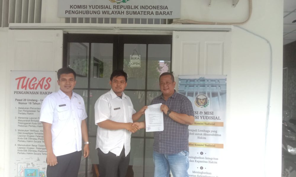 Laporan Avisenna diterima langsung oleh Asisten PIC Pemantauan M Rizki Faizal dan Asisten PIC Penerimaan Laporan Masyarakat Ade Saputra, Senin (3/4/2023) di Kantor Penghubung Komisi Yudisial RI Jalan Asahan, No 2 Komplek GOR H.Agus Salim Padang.