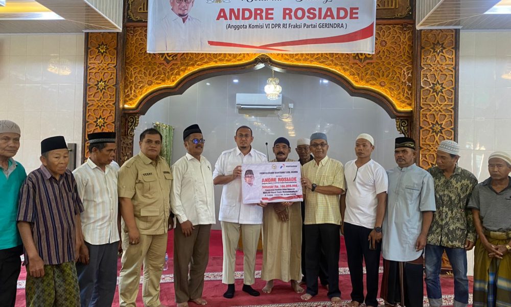 Padang, Kabarins.com- Anggota Komisi IV DPR RI, Andre Rosiade menyerahkan bantuan senilai Rp100 juta untuk renovasi Masjid Nurul Yaqin Muhammadiyah, Jalan Padang – Painan KM 24, Kota Padang, Senin (1/5/2023).