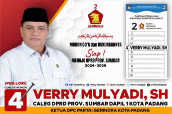 Verry Mulyadi yang dikenal sebagai seorang pengusaha dan aktifis organisasi, saatnya sekarang menjadi aktifis di Parlemen, karena perjuangan untuk masyarakat tanpa ada dukungan politik dan kekuasaan tidak akan maksimal. Dan Verry Mulyadi mempunyai tim yang paham masalah masyarakat dan nagari di Kota Padang, serta mengutamakan musyawarah dan mendengar langsung keluhan masyarakat.