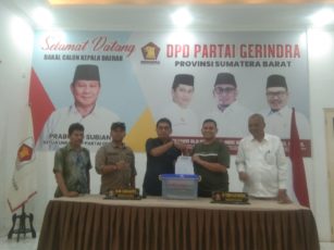 Padang, kabarins.com – Dewan Pimpinan Cabang (DPC) Gerindra Kota Padang menyerahkan berkas bakal calon Walikota Padang ke Dewan Pimpinan Daerah (DPD) Gerindra Sumatera Barat, Kamis (23/5/2024) siang.