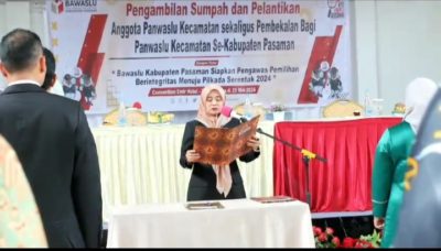 Sebanyak 36 orang anggota Panwaslu ini, diambil sumpah dan dilantik langsung Ketua Bawaslu Kabupaten Pasaman Rini Juita, MA. Kemudian dilanjutkan dengan penandatanganan berita acara pengambilan sumpah.