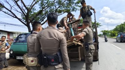 Padang, kabarins.com – Tidak indahkan himbauan petugas, pengepul barang bekas yang memakai bahu jalan di kawasan Aia Pacah, Kecamatan Koto Tangah, ditertibkan Satpol PP Padang, Rabu, (12/6/24).