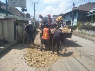 Diantaranya, melakukan penimbunan pada setiap badan dan bahu jalan yang berlobang menggunakan sirtu.