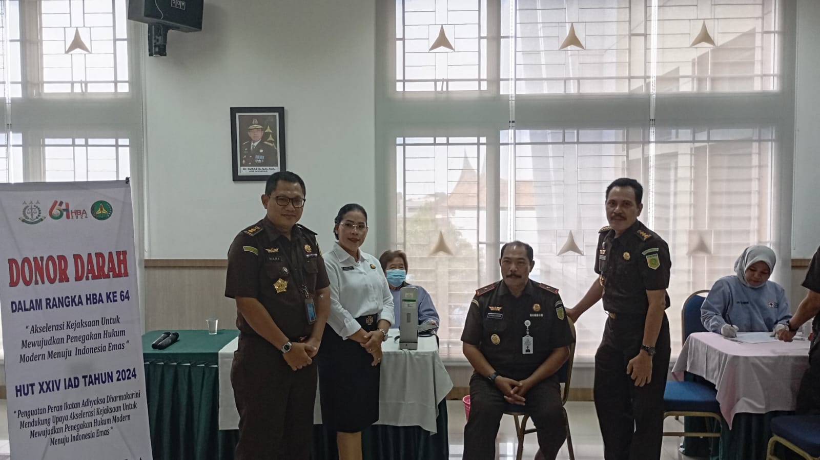 Donor darah ini dilakukan dalam rangka memperingati Hari Bhakti Adhyaksa (HBA) ke 64 dan Hari Ulang Tahun (HUT) Ikatan Adhyaksa Dharmakarini (IAD) ke XXIV tahun 2024.