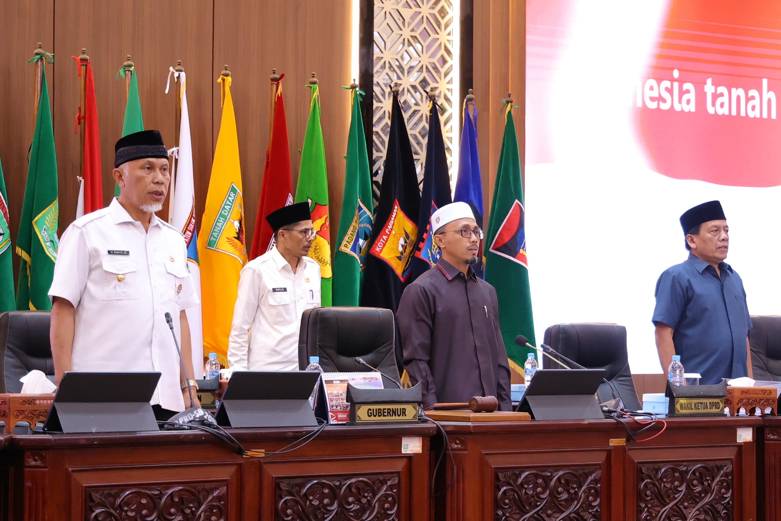 Paripurna tersebut dipimpin oleh Wakil Ketua DPRD Sumbar Irsyad Syafar dan didampingi oleh Wakil Ketua lainya Suwirpen Suib. Sementara dari Pemprov dihadiri langsung oleh Gubernur Sumbar Mahyeldi Ansharullah.
