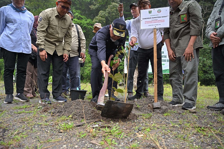 Gubernur Mahyeldi menegaskan pentingnya program ini sebagai langkah rehabilitasi kawasan hutan di Sumbar.