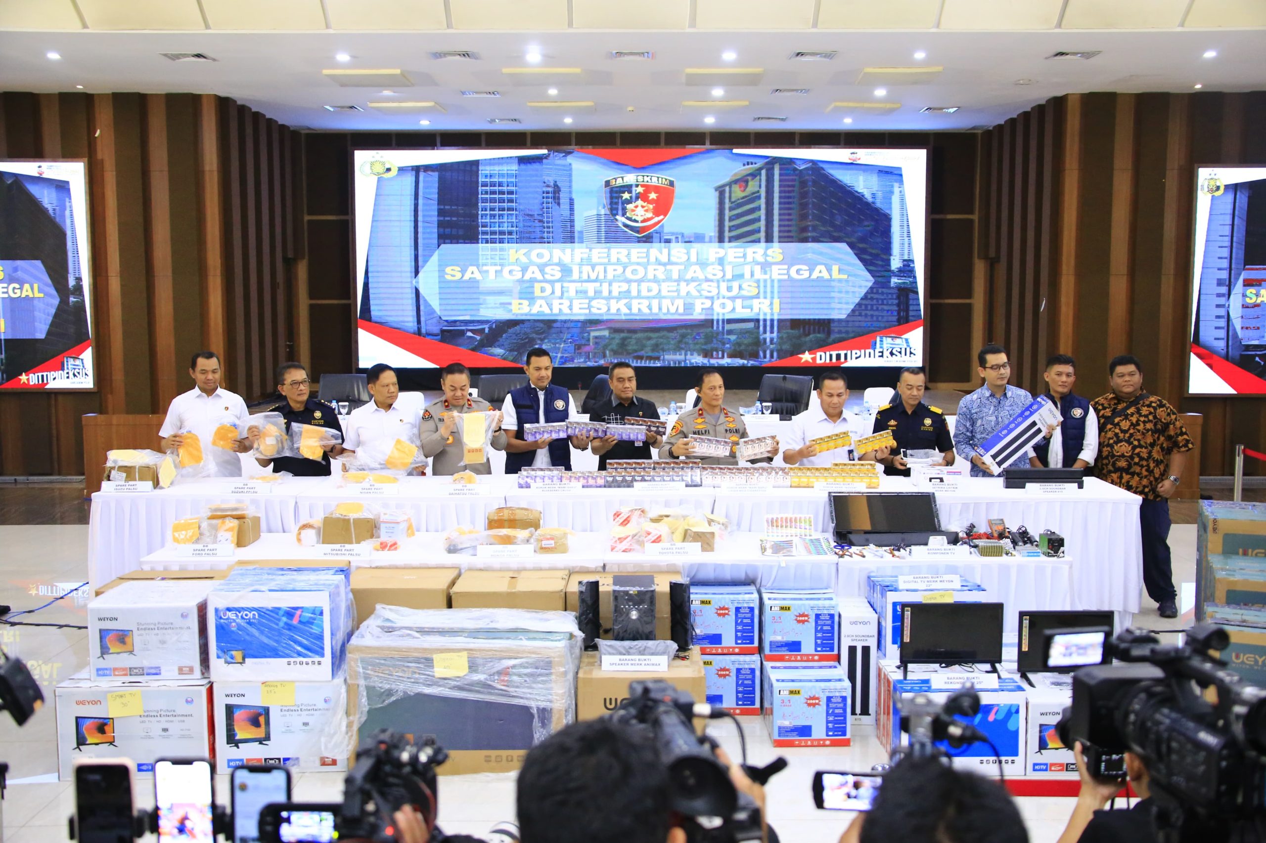 “Empat kasus penyelundupan berbagai jenis barang di Provinsi Jakarta, Banten, dan Jawa Barat dengan nilai barang sebesar Rp51.230.400.000 dan total nilai kerugian negara mencapai Rp64.257.680.000,” ujar Dirtipideksus Bareskrim Polri Brigjen. Pol. Helfi Assegaf di Mabes Polri, Jakarta Selatan, Selasa (4/2/2025).