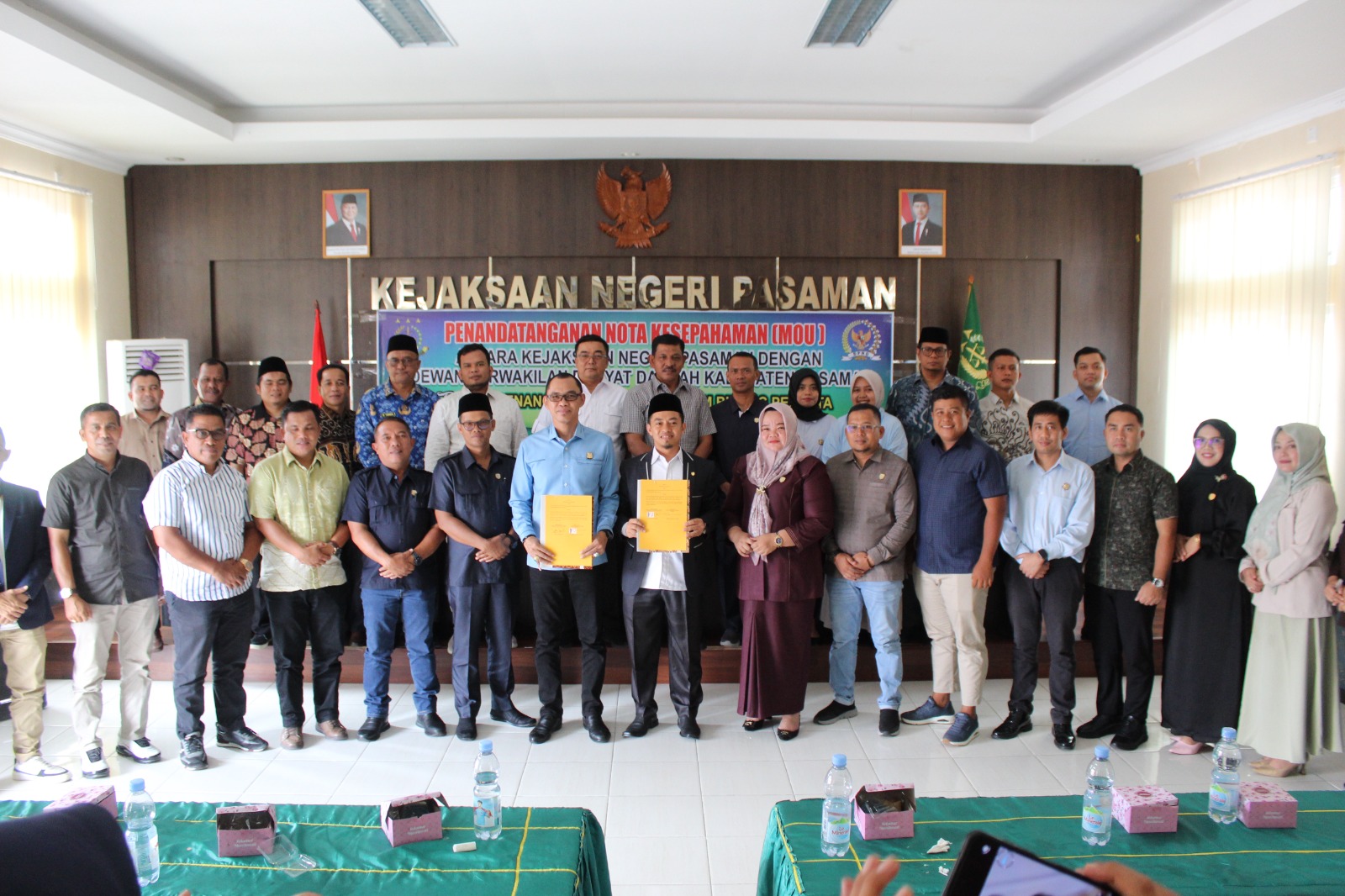 MoU antara Kejaksaan Negeri Pasaman Dengan DPRD Kabupaten Pasaman berkaitan dengan penanganan Masalah Hukum Bidang Perdata dan Tata Usaha Negara yang berkaitan dengan DPRD Kabupaten Pasaman nantinya. Terang sobeng.