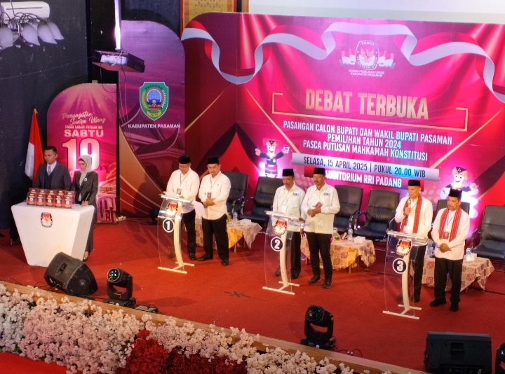 Pasaman, Kabarins.com—Debat Pemungutan Suara Ulang (PSU) Pilkada Pasaman memasuki segmen kelima dengan suasana sempat menghangat namun namun dibikin mencair oleh paslon nomor urut 1 Welly Suhery-Parulian Dalimunte. Meski begitu debat tetap dinamis.