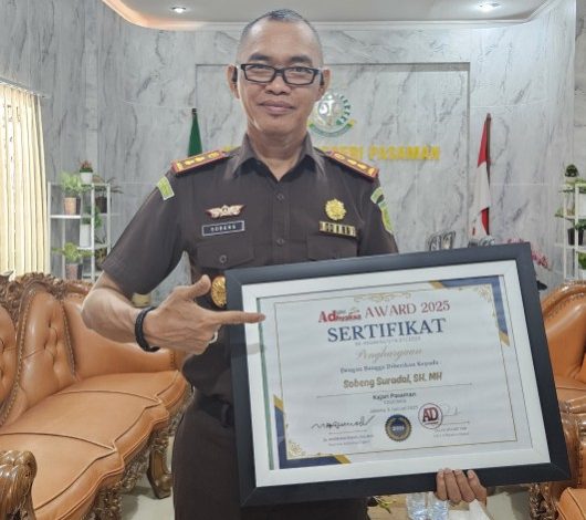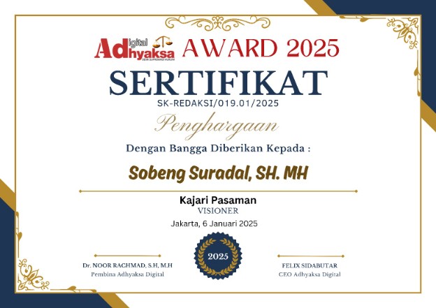 ADHYAKSA DIGITAL AWARD 2025 menobatkan Sobeng Suradal, SH. MH sebagai pemimpin visioner. Sosok pemimpin yang tegas, cerdas, berwibawa dan humanis. Sobeng Suradal adalah seorang motivator dan mengayomi seluruh pegawai dan jaksa pada Kejari Pasaman.