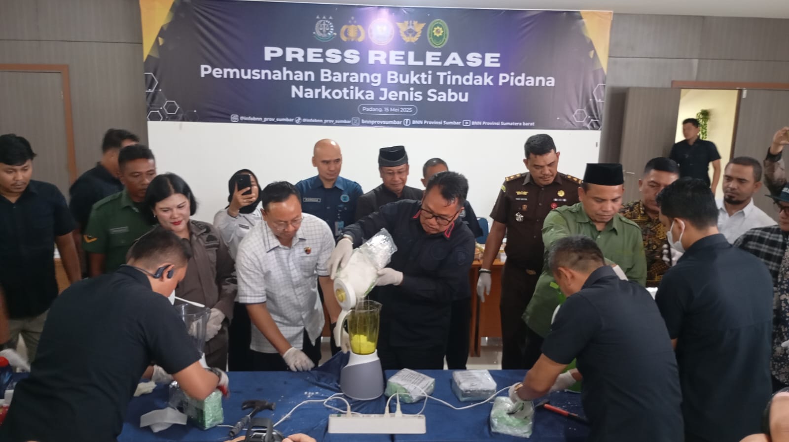 Padang, kabarins.com — Badan Narkotika Nasional Provinsi Sumatera Barat (BNNP Sumbar) bersama sejumlah instansi terkait resmi memusnahkan barang bukti narkotika jenis sabu seberat 6.854,57 gram, Kamis (15/5/2025).