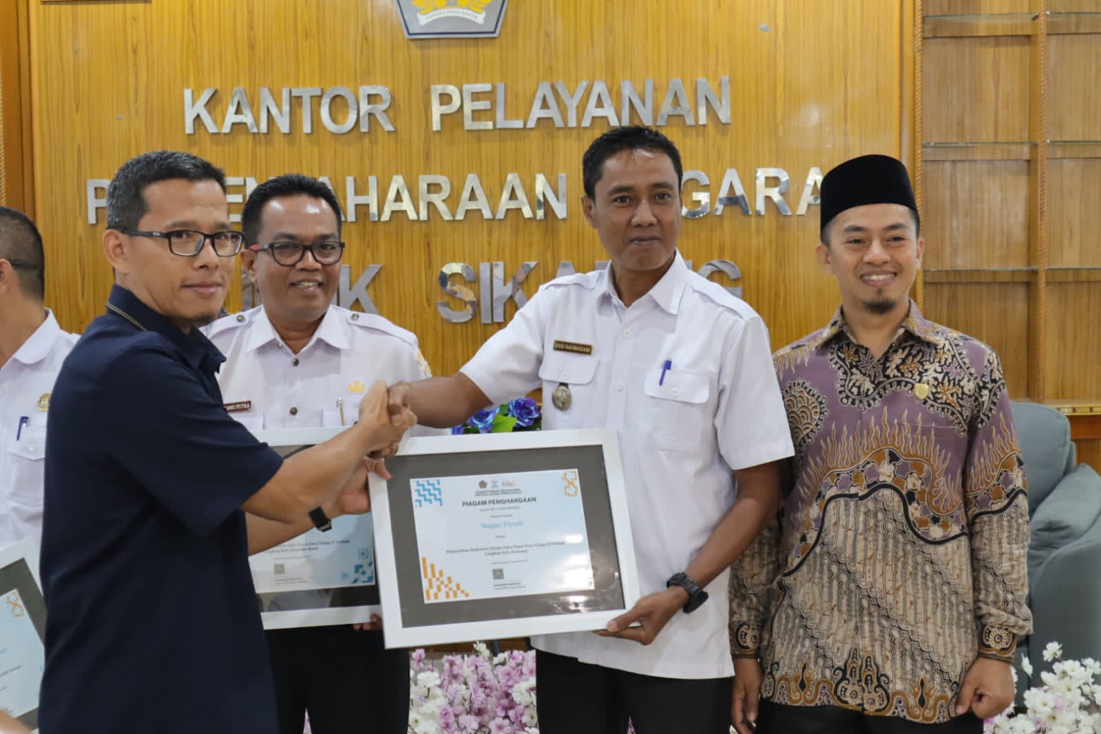 Penghargaan ini diberikan sebagai bentuk apresiasi atas kinerja optimal dalam penyaluran Dana Desa Tahap I Tahun Anggaran 2025 yang dinilai tercepat dan tepat sasaran. Kepala KPPN Lubuk Sikaping, Syahrawi Munthe menyerahkan penghargaan tersebut secara langsung di Aula KPPN Lubuk Sikaping.