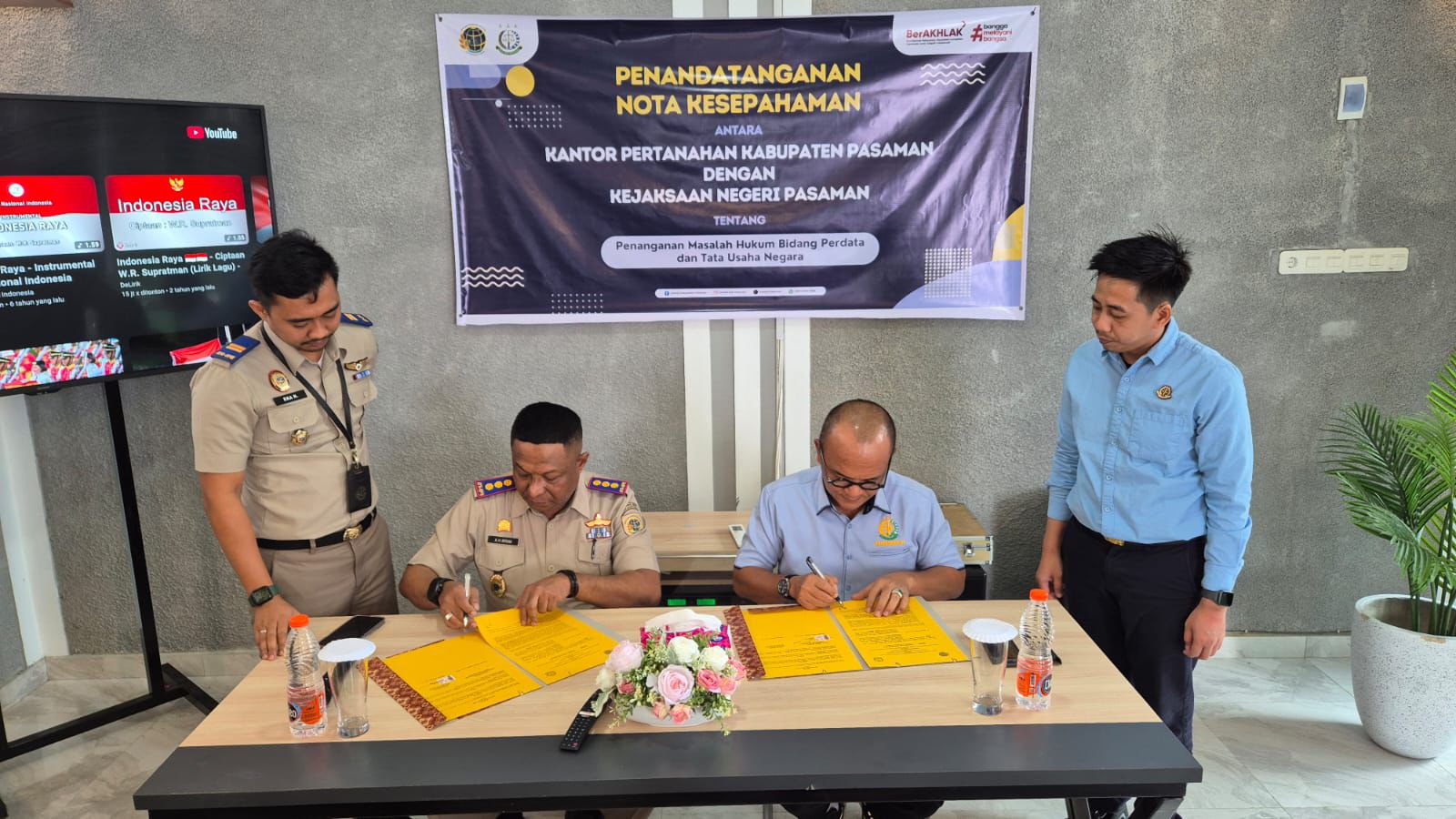 Pasaman, Kabarins.com — Kantor Pertanahan Kabupaten Pasaman (BPN Pasaman) resmi menandatangani Nota Kesepahaman (MoU) dengan Kejaksaan Negeri Pasaman terkait Penanganan Masalah Hukum di Bidang Perdata dan Tata Usaha Negara.