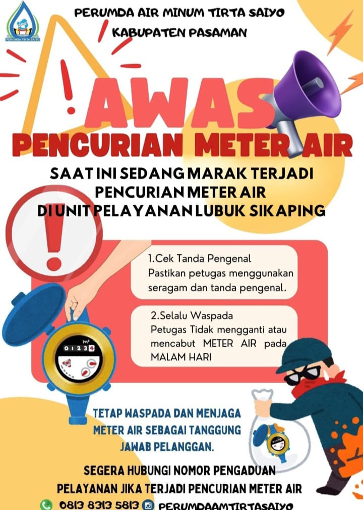 “Petugas resmi Perumda Tirta Saiyo selalu menggunakan seragam dan tanda pengenal. Selain itu, kami menegaskan bahwa tidak ada kegiatan penggantian maupun pencabutan meter air pada malam hari tanpa pemberitahuan resmi,” tegasnya.