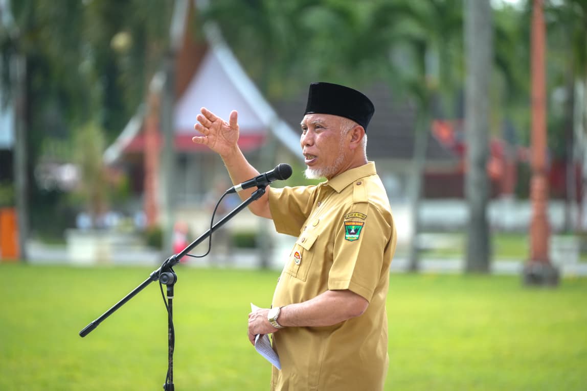 PADANG, Kabarins.com — Gubernur Sumatera Barat (Sumbar), Mahyeldi Ansharullah menegaskan Aparatur Sipil Negara (ASN) di lingkungan Pemerintah Provinsi Sumbar (Pemprov Sumbar) harus bekerja dengan orientasi dampak, bukan hanya sekadar menjalankan proses dan administrasi. Penegasan tersebut disampaikannya saat memimpin Apel Gabungan Awal Tahun 2026 di halaman Kantor Gubernur Sumbar, Senin (5/1/2026).