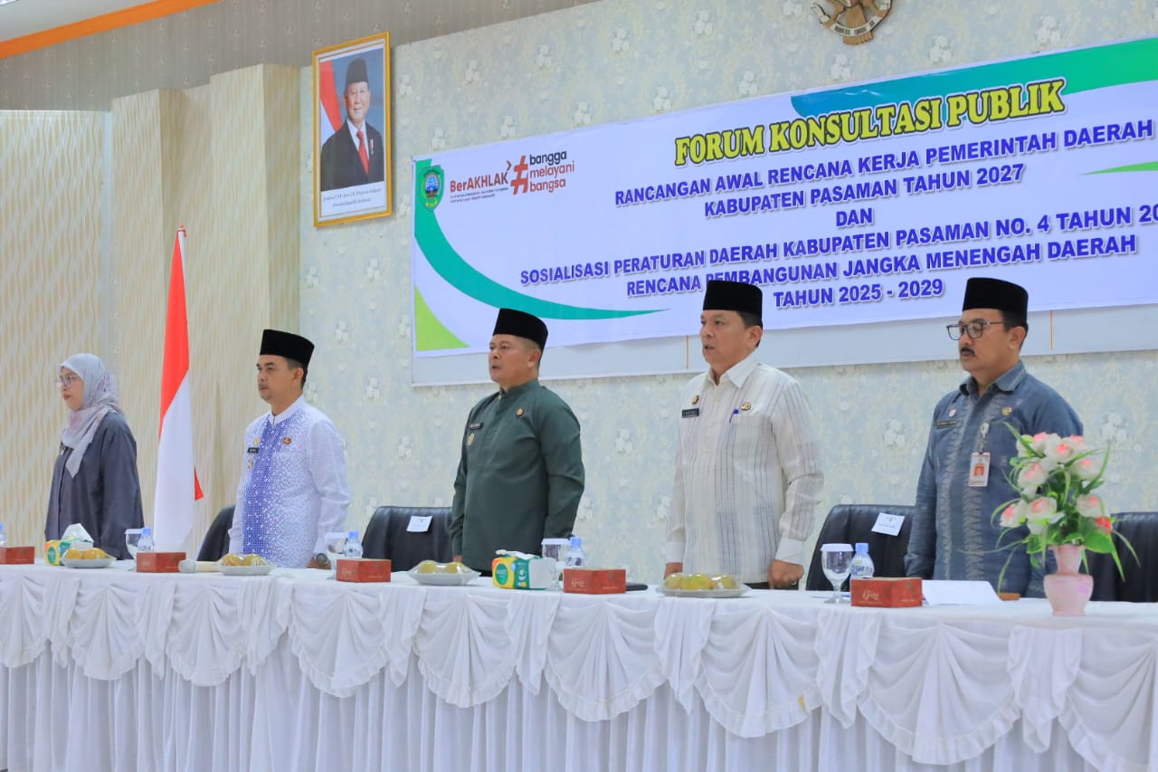 Pasaman, Kabarins.com — Pemerintah Kabupaten Pasaman terus memantapkan arah pembangunan daerah dengan menggelar Forum Konsultasi Publik Rancangan Awal Rencana Kerja Pemerintah Daerah (RKPD) Tahun 2027. Kegiatan strategis ini dirangkaikan dengan Sosialisasi Peraturan Daerah Nomor 4 Tahun 2025 tentang Rencana Pembangunan Jangka Menengah Daerah (RPJMD) Kabupaten Pasaman Tahun 2025–2029, dan dibuka secara resmi oleh Bupati Pasaman, Welly Suhery. Di aula Lantai III Kantor Bupati. Jum’at (30/01/2026).
