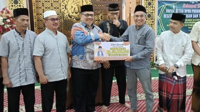 PESSEL,Kabarins.com — Anggota Komisi III DPRD Provinsi Sumatera Barat, Muchlis Yusuf Abit, melaksanakan Safari Ramadan di daerah pemilihannya di Kabupaten Pesisir Selatan (Pessel) dengan menyalurkan bantuan sebesar Rp460 juta untuk 8 masjid dan 3 musala.