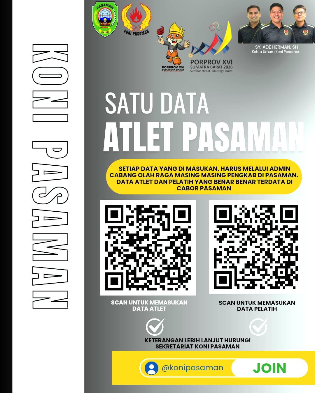Ketua KONI Pasaman, SY Ade Herman, menegaskan bahwa pendataan ulang ini mencakup seluruh atlet dan pelatih dari berbagai cabang olahraga yang tersebar di kabupaten tersebut. Program ini diharapkan dapat menghasilkan basis data yang akurat, terintegrasi, dan berkelanjutan.