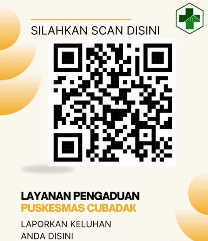 Melalui layanan ini, masyarakat dapat menyampaikan keluhan, saran, maupun kritik dengan mudah melalui website resmi Puskesmas Cubadak. Pengguna cukup memindai (scan) barcode yang telah disediakan untuk mengakses platform pengaduan secara langsung.