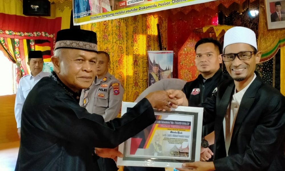 Pemberian Penghargaan tersebut dilaksanakan di Istana Tuanku Bosa Rumah Gadang Koto Dalam, Kecamatan Talamau, Kamis (26/5) pagi hadir dalam acara tersebut yakni dari Lazis Darul Hikmah diwakili oleh Pimpinan Pondok Pesantren Darul Hikmah K.H Abdul Hadi Lc, Ketua Dewan Pembina Darul Hikmah Abi Masnil Munaf, SP, Ketua PMI Pasaman Barat sekaligus Wakil Bupati Pasaman Barat Risnawanto SE, TNI, Polres Pasaman Barat dan lainnya.