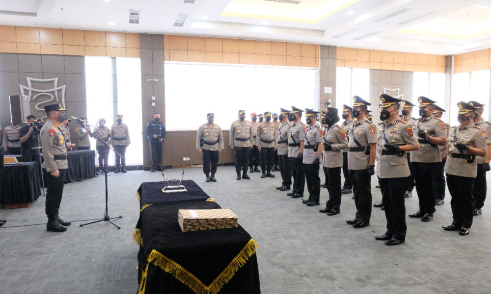 Kabarins.com, Padang-Kapolda Sumatera Barat Irjen Pol Teddy Minahasa P, SH. S.Ik. MH memimpin upacara serah terima jabatan (Sertijab) kepada satu Pejabat Utama dan tujuh Kapolres sejajaran Polda Sumbar.