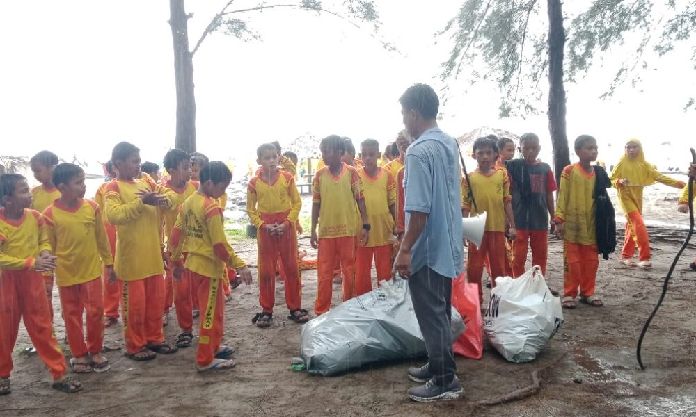 Kabarins.com, Pasbar–SD Islam Terpadu (IT) Darul Hikmah, Kabupaten Pasaman Barat, Sumatera Barat, sukses mengadakan Rihlah dan Bakti Sosial demi menjaga kebersihan serta keindahan di Pantai Sasak.