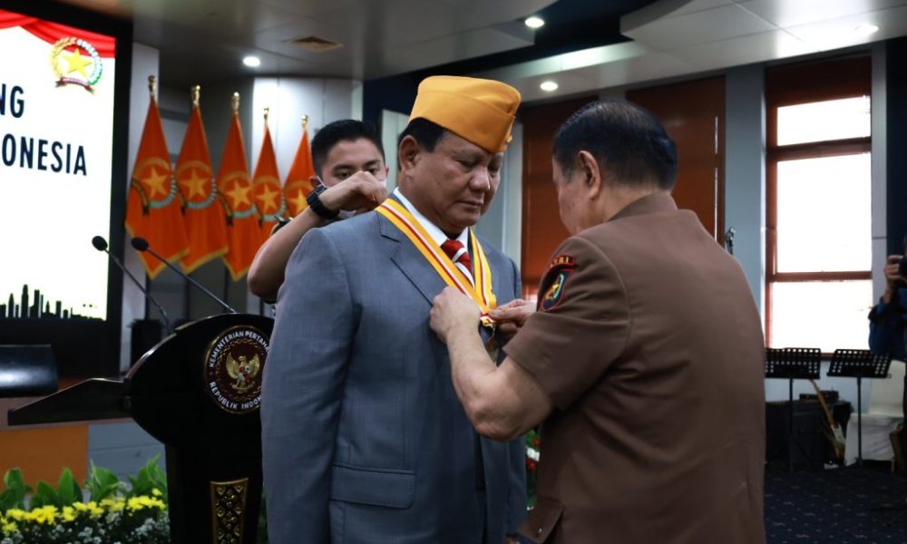 Kabarins.com -Menteri Pertahanan Republik Indonesia Prabowo Subianto dianugerahi Bintang Legiun Veteran Republik Indonesia (LVRI) di HUT LVRI ke-66. Prabowo mendapat anugerah tersebut atas darma baktinya untuk perkembangan dan kemajuan LVRI.