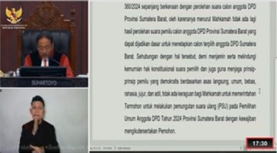 “Pemilihan DPD PSU di Sumbar,” Itulah putusan Mahkamah Konstitusi (MK) atas gugatan PHPU yang dilakukan Irman Gusman, Senin (10/6/2024).