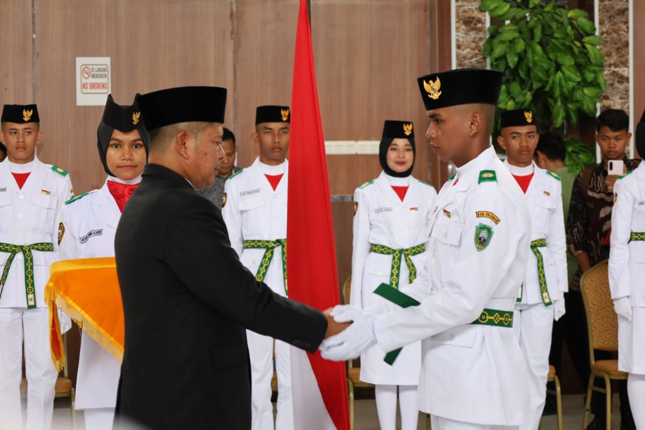 Pasaman, Kabarins.com — Bupati Pasaman, Welly Suhery, secara resmi mengukuhkan 35 orang Anggota Pasukan Pengibar Bendera Pusaka (Paskibraka) Tingkat Kabupaten Pasaman Tahun 2025 di Aula Hotel Emir, Jumat (15/8/2025).