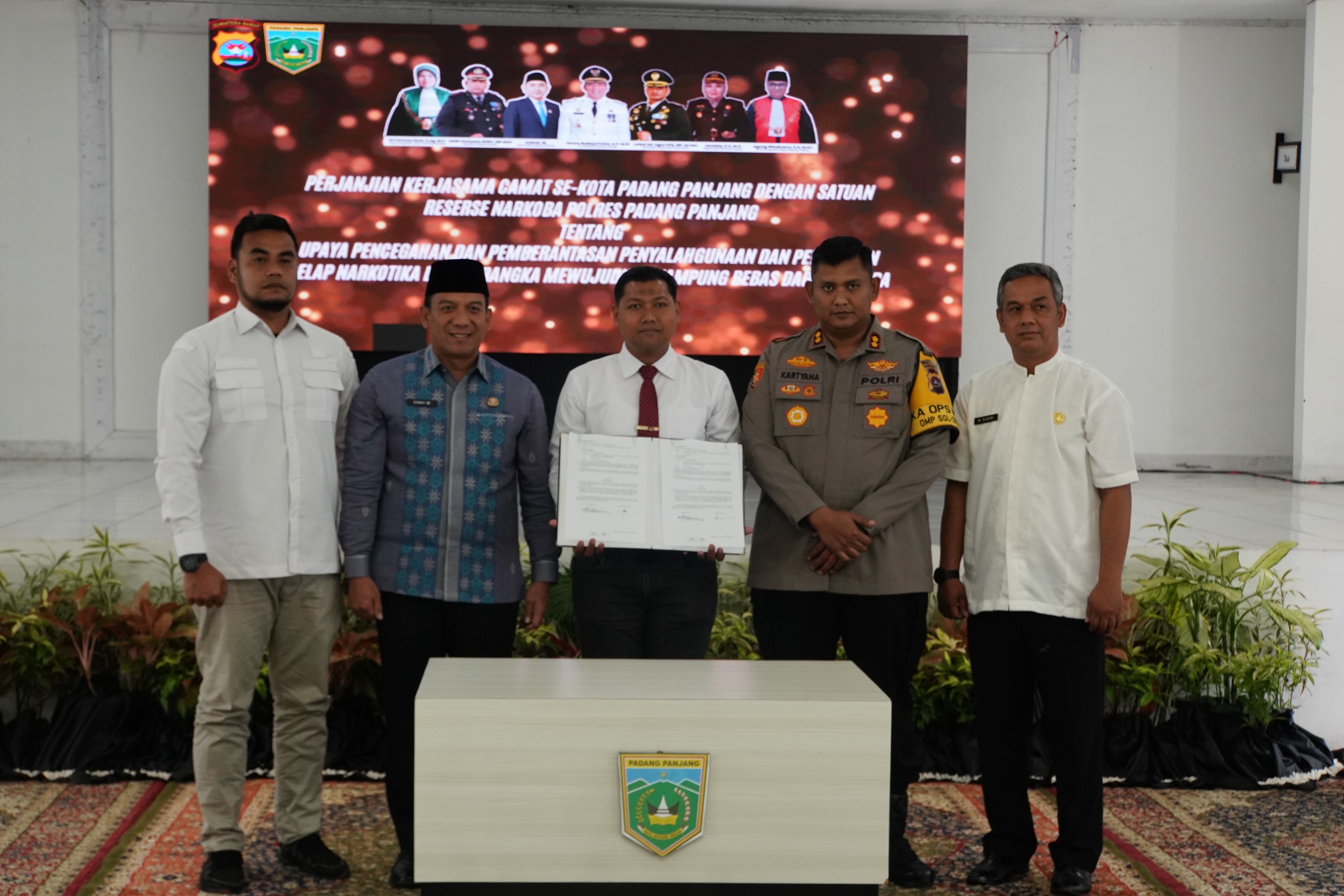 Penandatanganan ini dilakukan antara camat se-Padang Panjang dengan Kasat Res Narkoba Polres sebagai langkah konkret pencegahan penyalahgunaan narkotika.